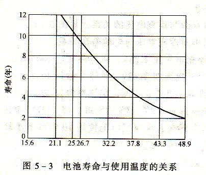 由圖5—3可見,溫度對(duì)電池的自然老化過(guò)程有很大影響。溫度上升,電池壽命下降。